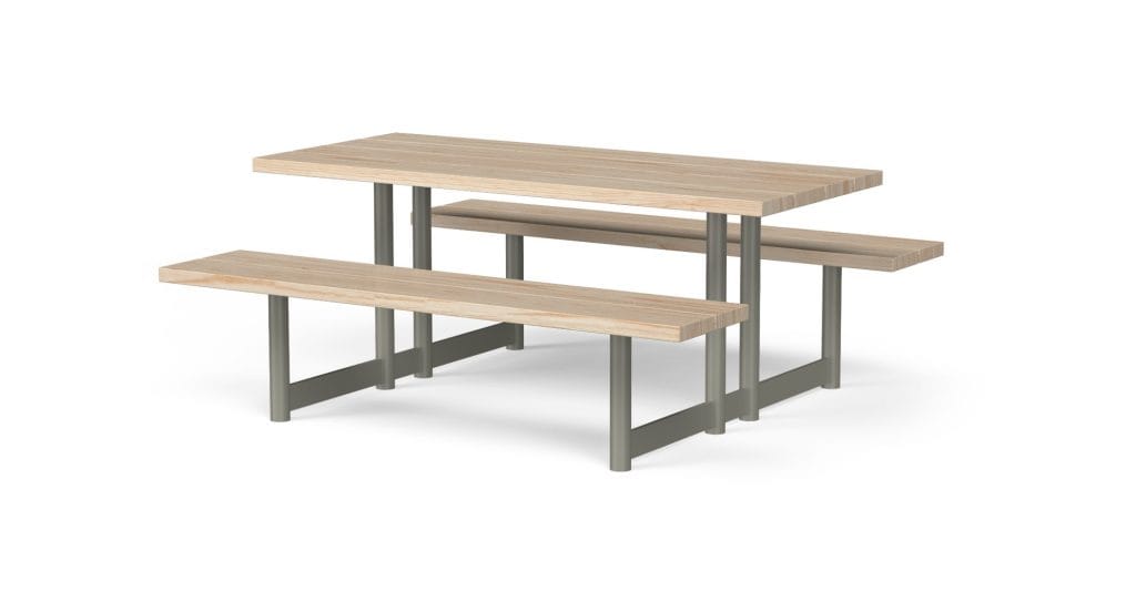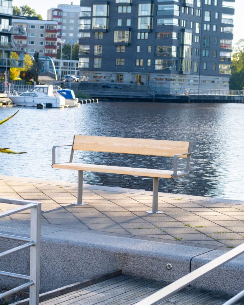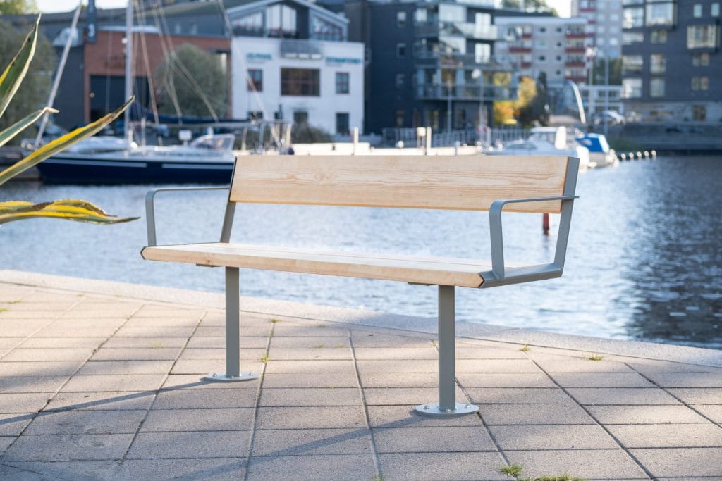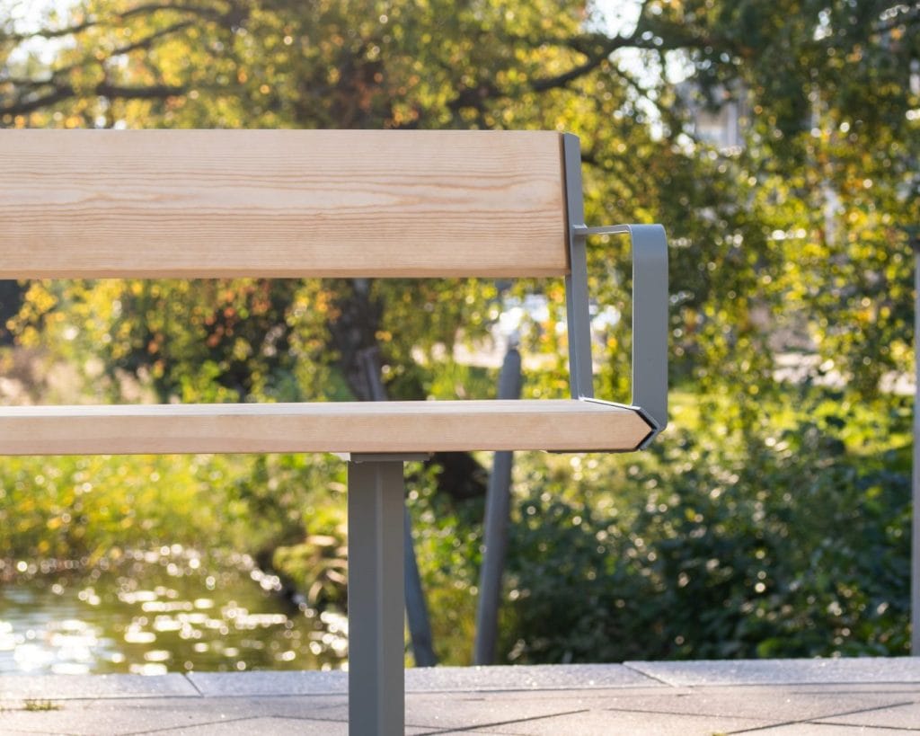 Parkmöblerna är framtagna med ett långsiktigt synsätt där material, produktion och användning hänger ihop. Träet kommer från svenska skogar och är helt obehandlat, vilket gör att det kan återvinnas som vanligt trä. Ståldelarna tillverkas och varmförzinkas i Sverige och kan återföras till materialåtervinning.