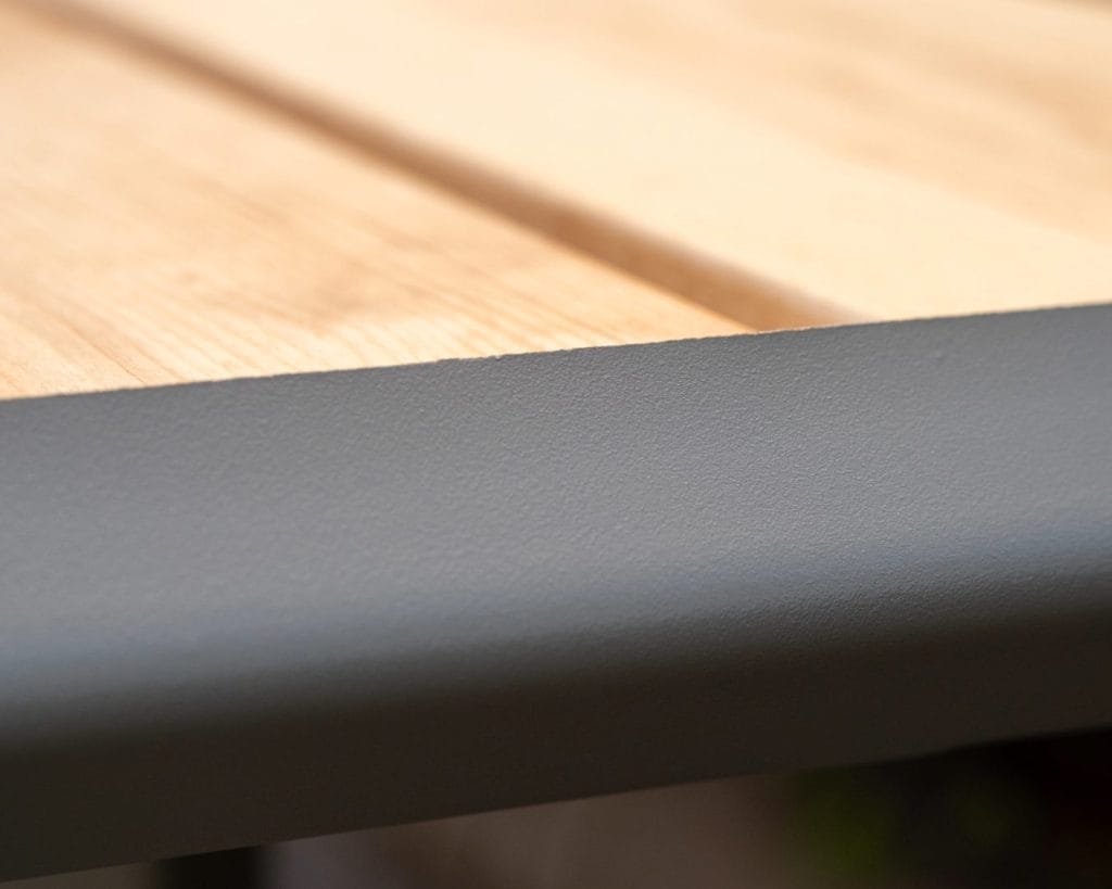 Alla ståldetaljer tillverkas av svensk råvara och produceras lokalt i Dalsland. De varmförzinkas och svepblästras för att ge en slitstark och tålig yta. Vi avstår slipning av både arbetsmiljö- och kvalitetsskäl. Detaljerna är pulverlackerade för att ge en strukturerad och matt yta. Standardfärg är RAL 7023.